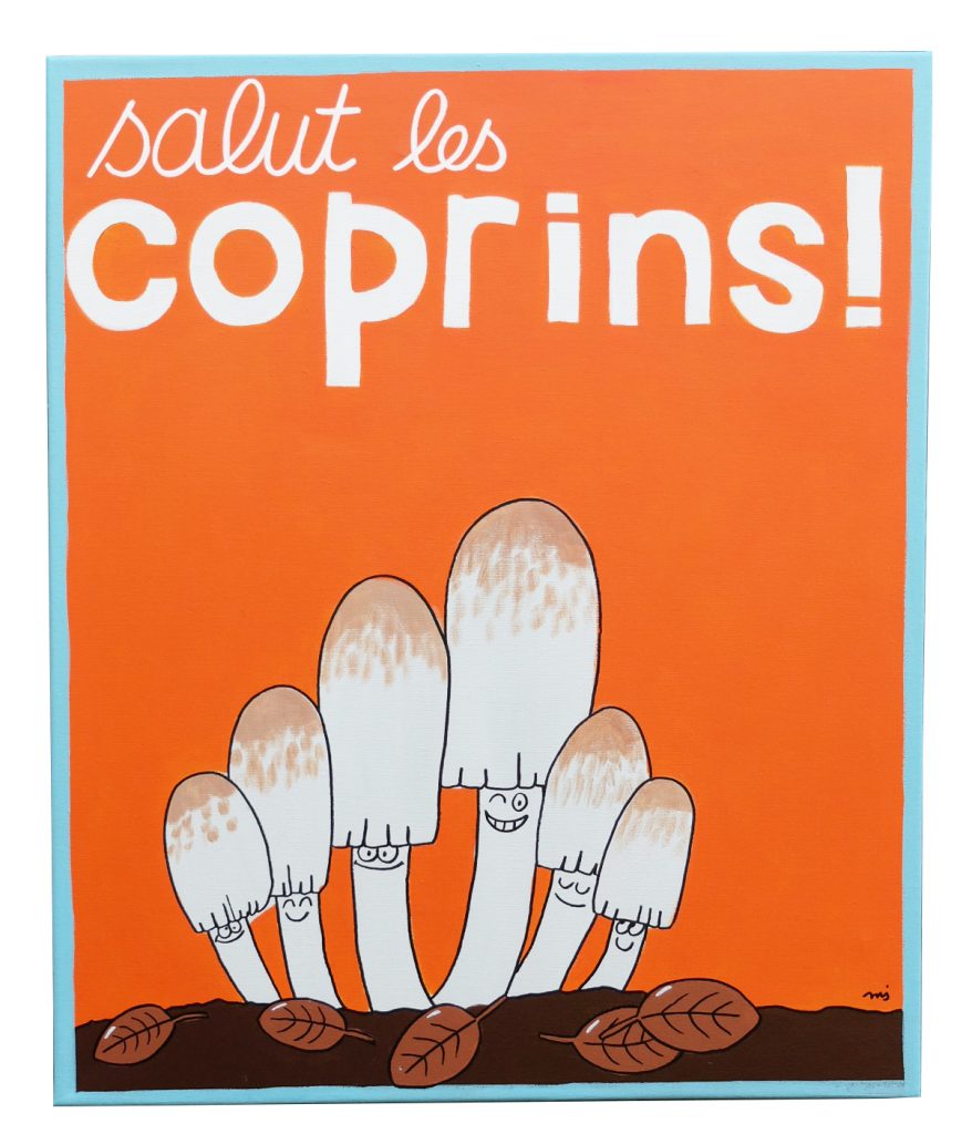 Une expo de peintures humoristiques qui peut être accompagnée des photo macro (avec des liens entre peintures et photos) de Claudy Jolivet qui est aussi mycologue et de toiles poétiques de Erell Jolivet. Nous avons présenté de nombreuses expositions dans le cadre de salons mycologiques pour public averti ou en quête de découvertes sur le monde fascinant des champignons. Nous créons aussi des jeux (clef ludique et magnétique de détermination des champignons, domino géant, jeu de l’oie géant, memory etc.). Un dossier est disponible si vous êtes intéressé.